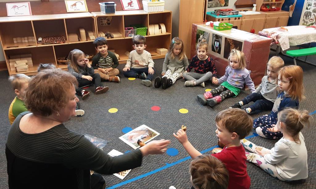 Meeting times are another important component. Children participate as a group through theme discussions, stories, music/movement, sharing bags, and more. Preschoolers have great ideas and experiences to share! We learn and develop together as a class throughout the school year.
